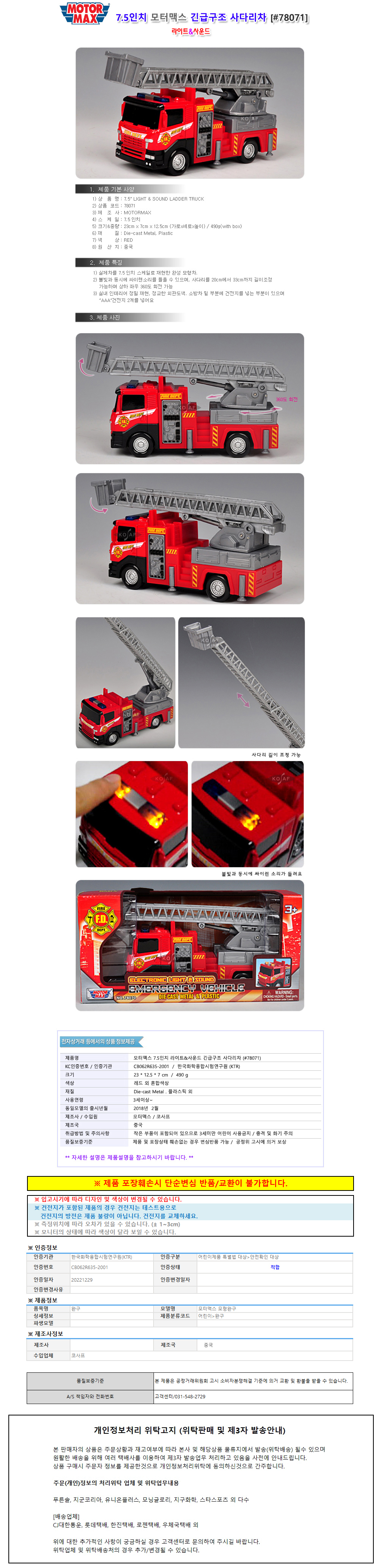모터맥스 7.5in 라이트앤사운드 긴급 구조 사다리차 (78071)