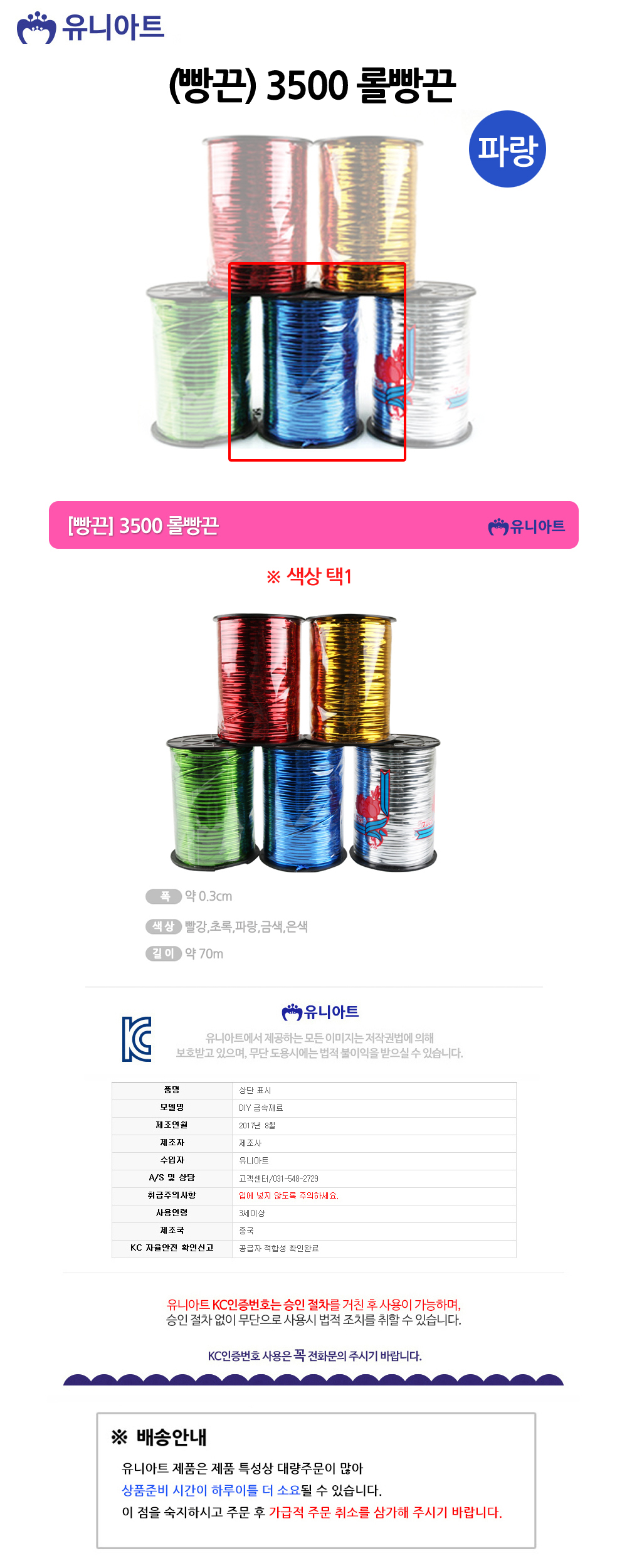 유니아트 (공예철사) 3500 롤빵끈 (파랑) 선물포장 빵끈