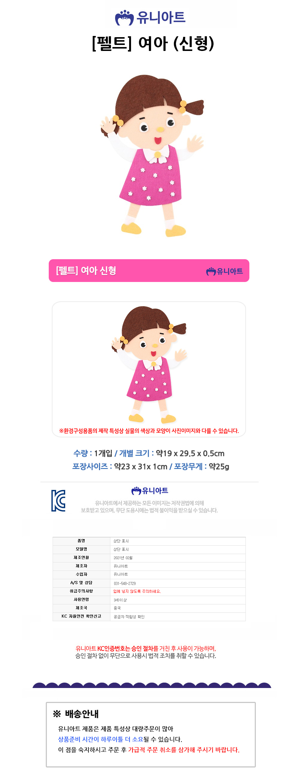 유니아트 펠트 7000 여아 신형