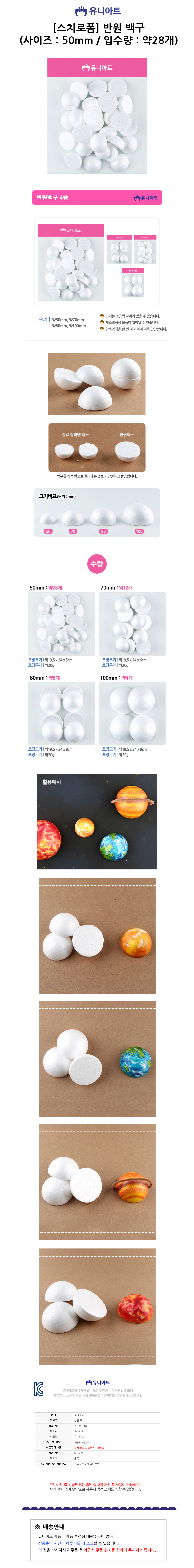 유니아트 만들기재료 스치로폼 백구 반원 (50mm) 스티로폼