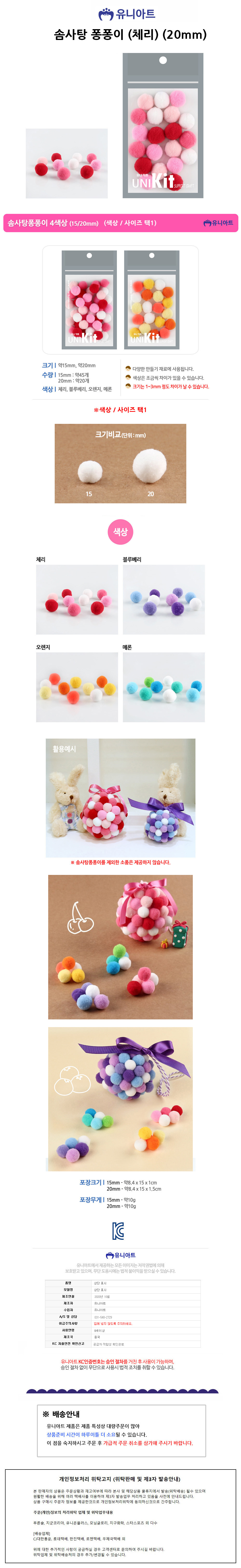 유니아트 퐁퐁 1000 솜사탕 퐁퐁이 체리 20mm