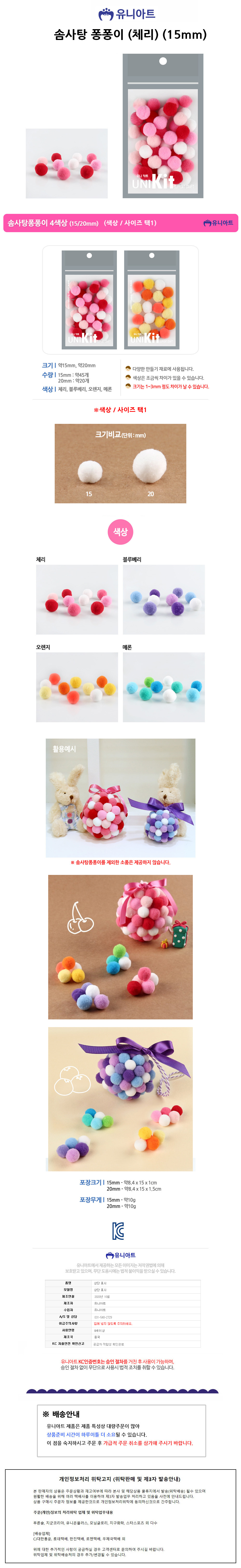유니아트 퐁퐁 1000 솜사탕 퐁퐁이 체리 15mm