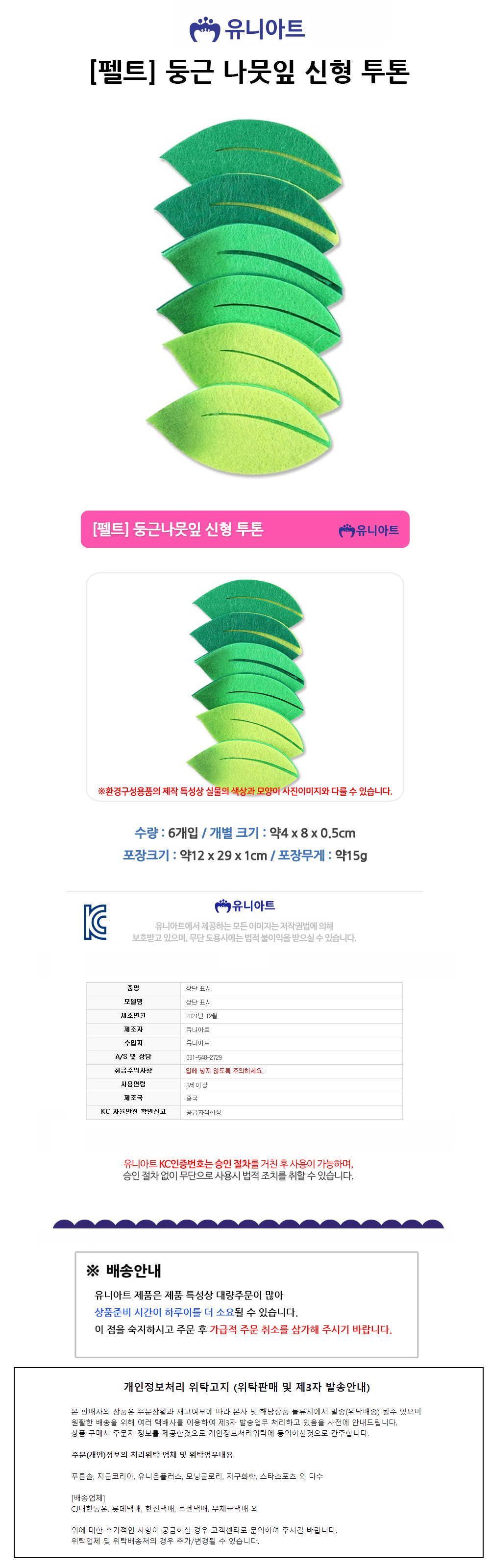 유니아트 펠트 2500 둥근 나뭇잎 신형 투톤