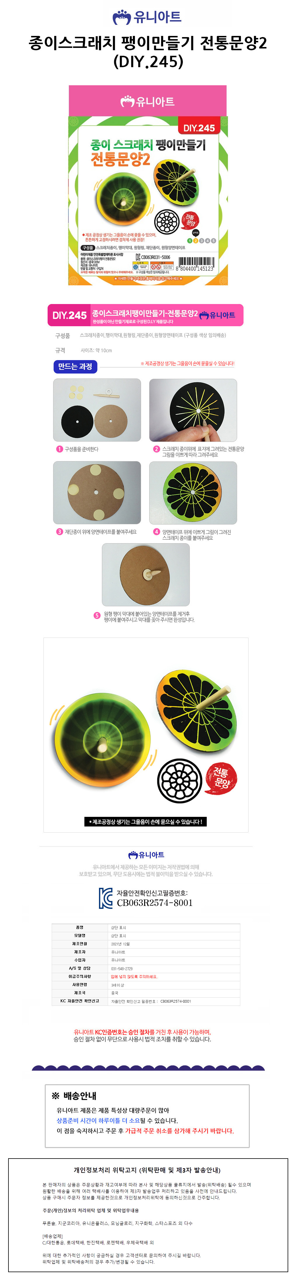 유니아트 DIY.245 1500 종이스크래치 팽이만들기 전통문양2