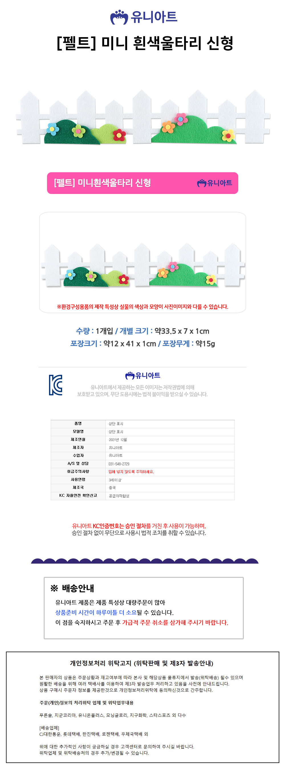 유니아트 펠트 미니 흰색 울타리 신형