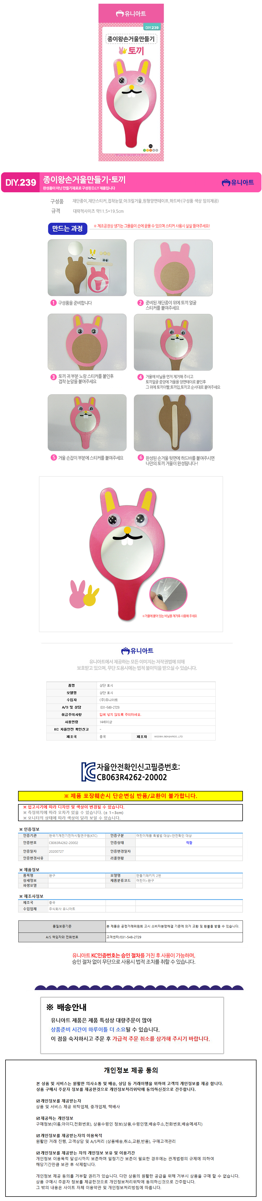 유니아트 (DIY.239) 종이 왕손거울 만들기 (토끼)