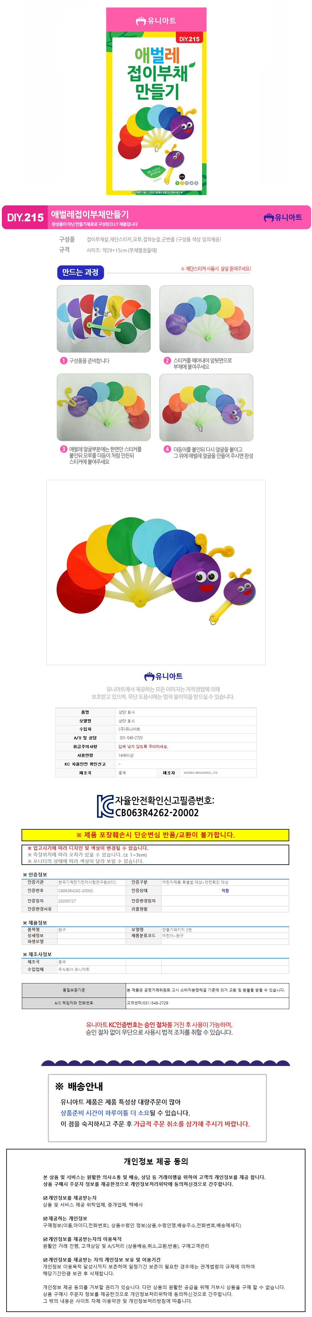 유니아트 (DIY.215) 접이식 부채 만들기 (애벌레)