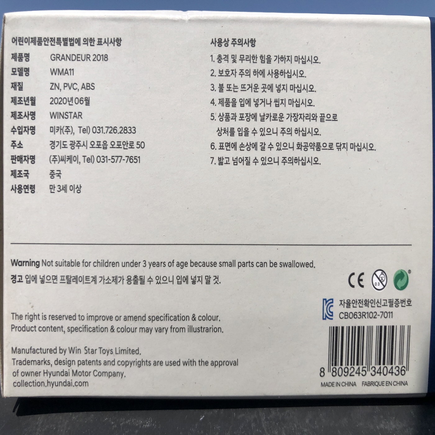 | A/S 또는 소비자상담 전화번호 | 고객센터/031-577-7651 |