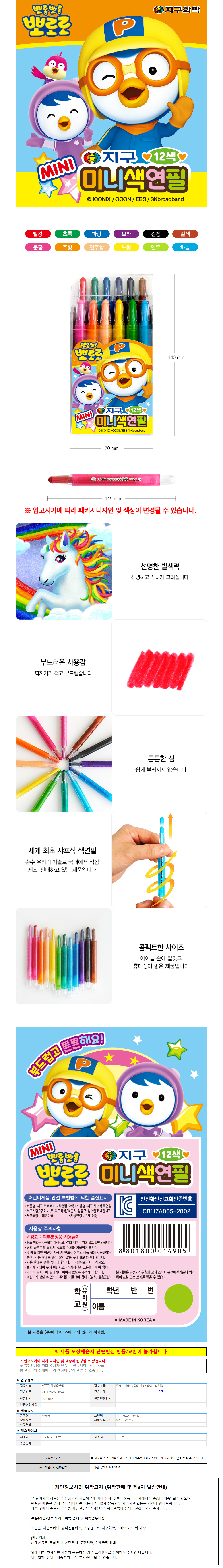 지구화학 뽀로로 미니 색연필 12색 신학기 준비물