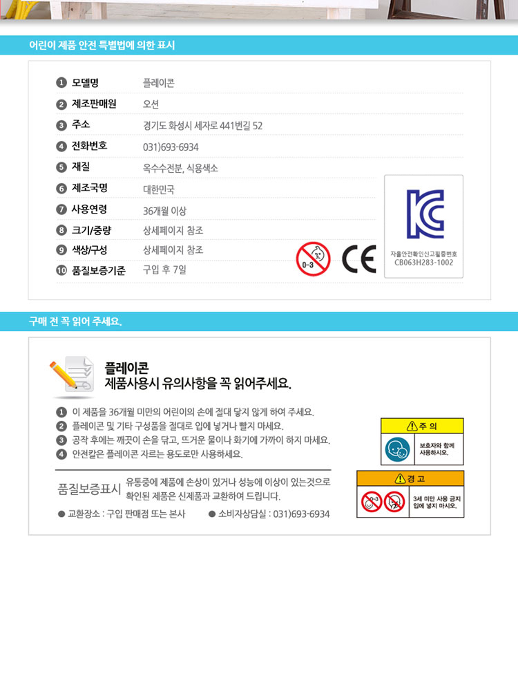 품명 및 모델명 플레이콘 아이/플레이콘