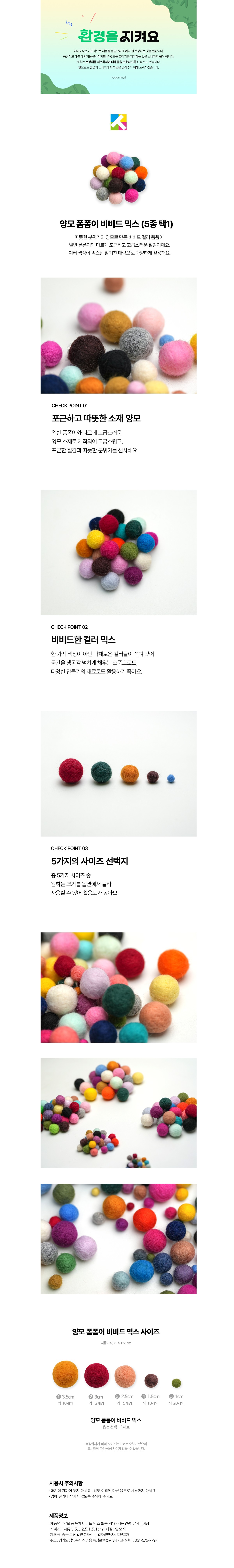• 모델명(TD) 양모 폼폼이 비비드 믹스