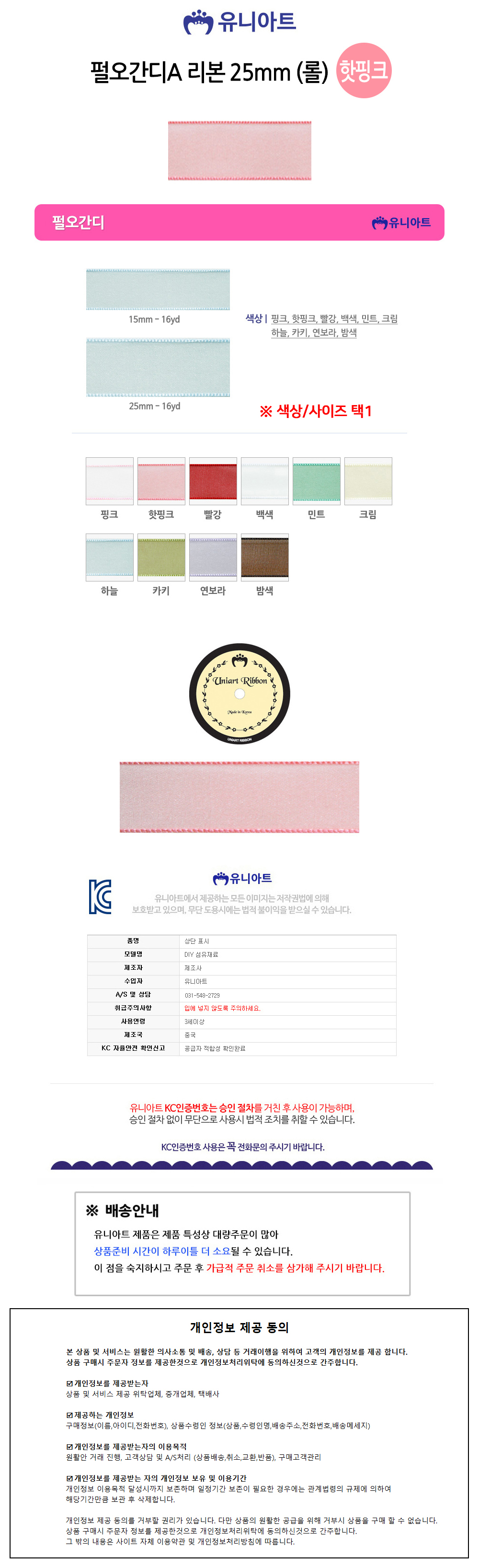 유니아트(리본) 7000 펄오간디A 리본 25mm (핫핑크) (롤)