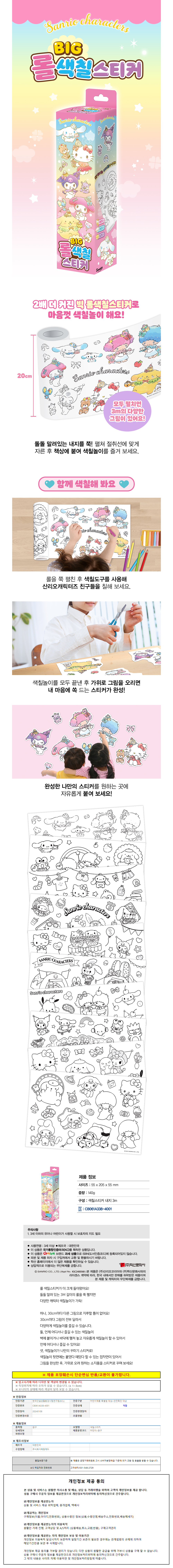 학산문화사 색칠놀이 산리오캐릭터즈 빅 롤 색칠 스티커