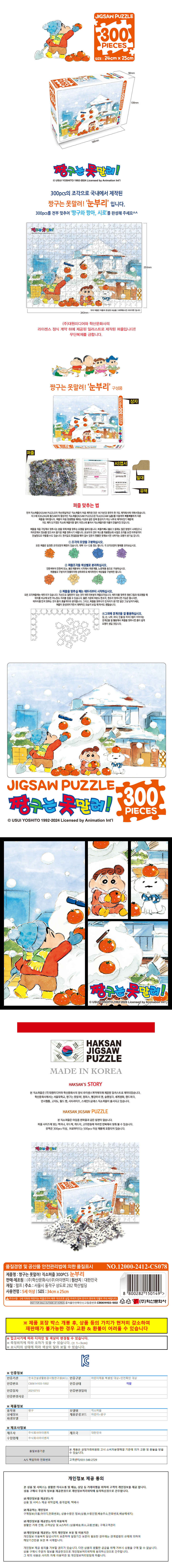 짱구는 못말려 300P (눈부리) 어린이 학습 퍼즐