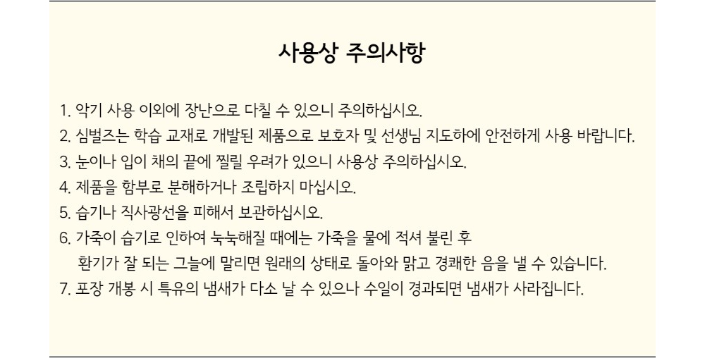 | 제품구성 | 탬버린, 심벌즈, 트라이앵글, 캐스터네츠, 케이스 |
