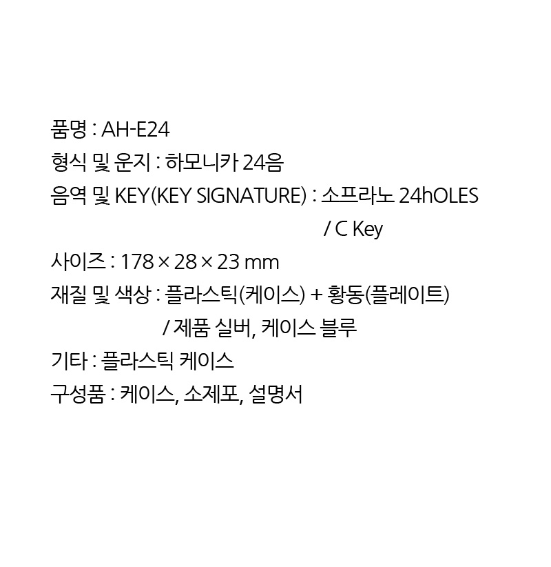 품명 및 모델명 엔젤악기 소프라노 24음 트레몰로 황동하모니카/AH-E24