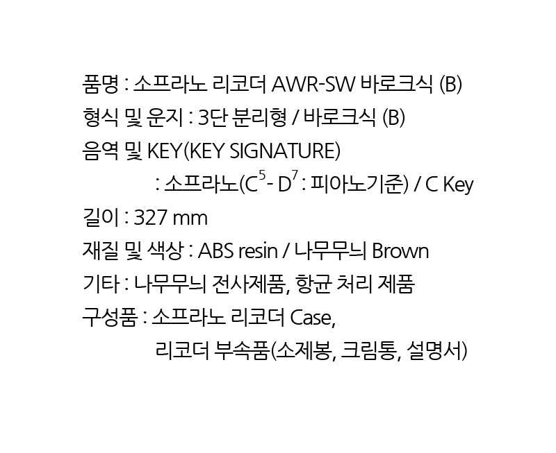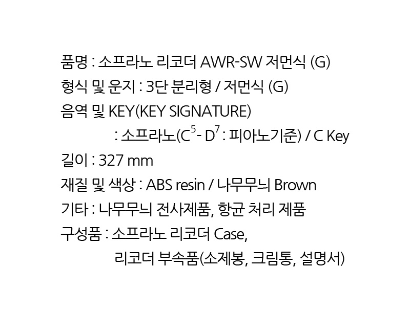| 품명 및 모델명 | 엔젤악기 소프라노 리코더 AWR-SW(저먼식/바로크식) |