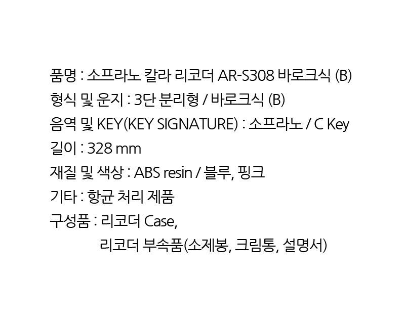 | 품명 및 모델명 | 엔젤악기 소프라노 리코더 AR-S308 바로크식 B |