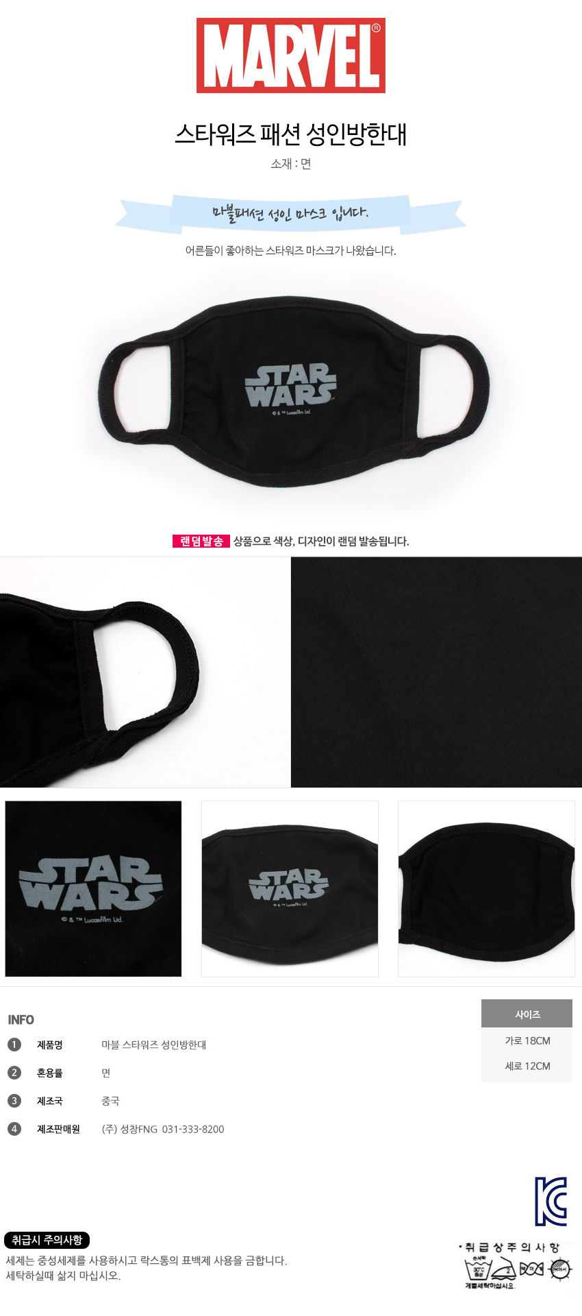 성창FNG 스타워즈 패션 성인 방한대