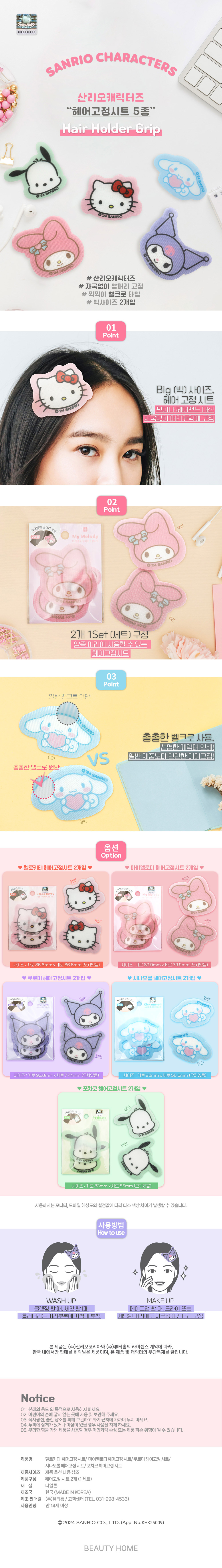 품명 및 모델명 산리오 헤어 고정시트-쿠로미