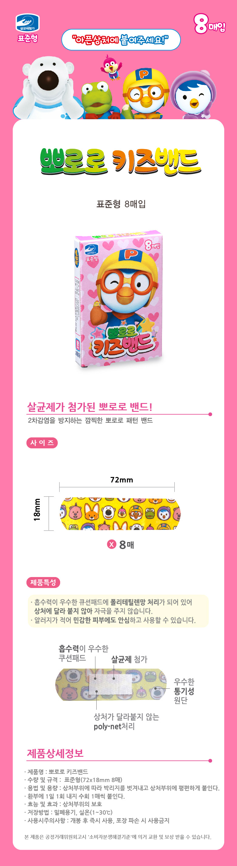 가정상비약 뽀로로 어린이용 밴드 8매입