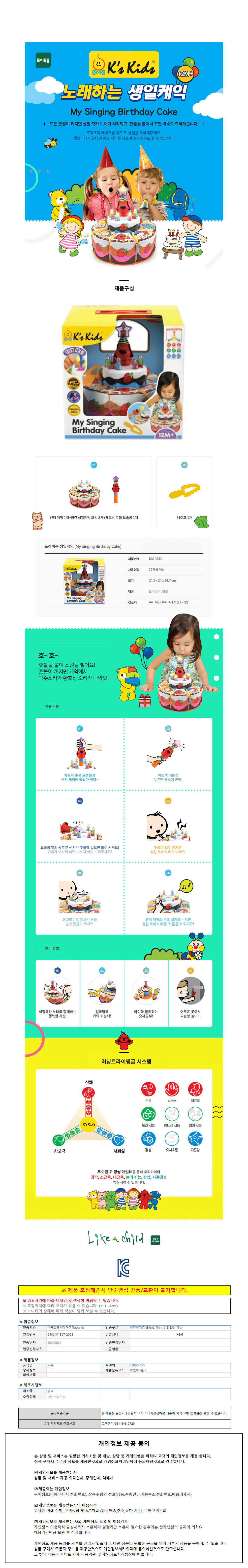 케이스키즈 노래하는생일케익 KA10543