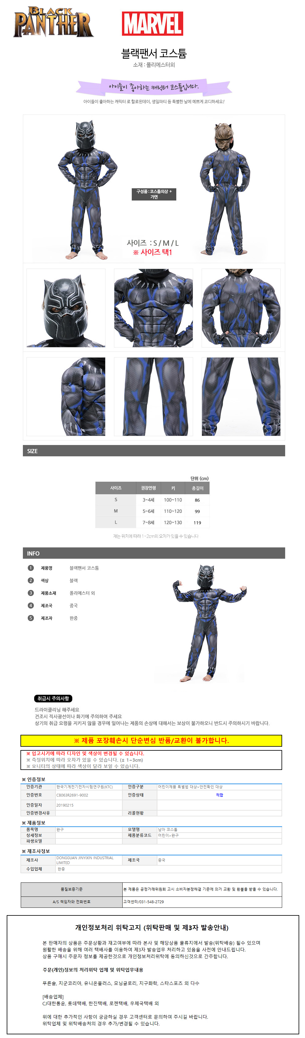 한중 블랙팬서 코스튬 택1