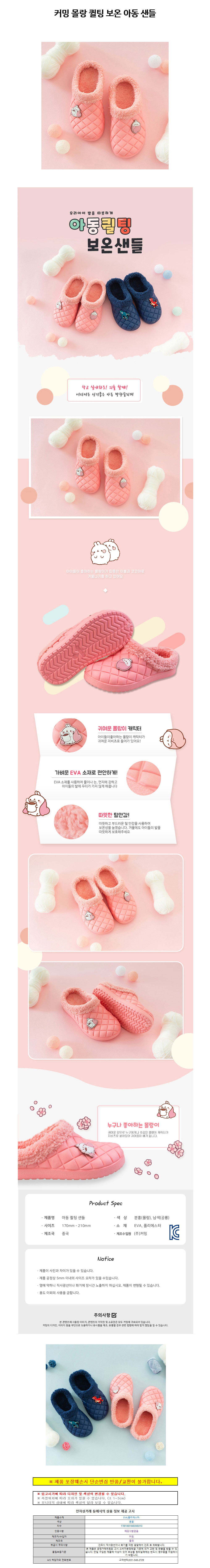 커밍 몰랑 퀼팅 보온 아동 샌들 (택1)