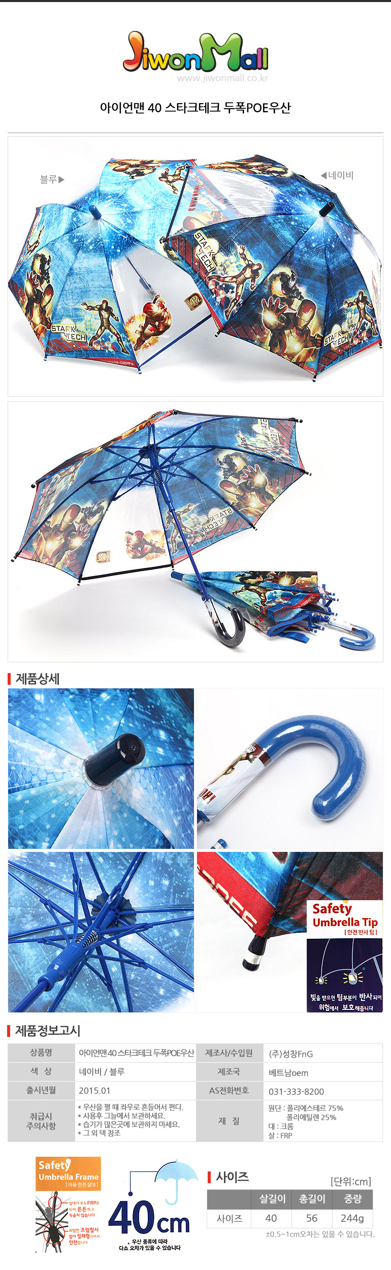 | 취급시 주의사항 | 1.우산을 펼 때 좌우로 흔들어서 펴주세요. 2.사용 후 그늘에서 보관하세요. 그 외 텍 참조. |