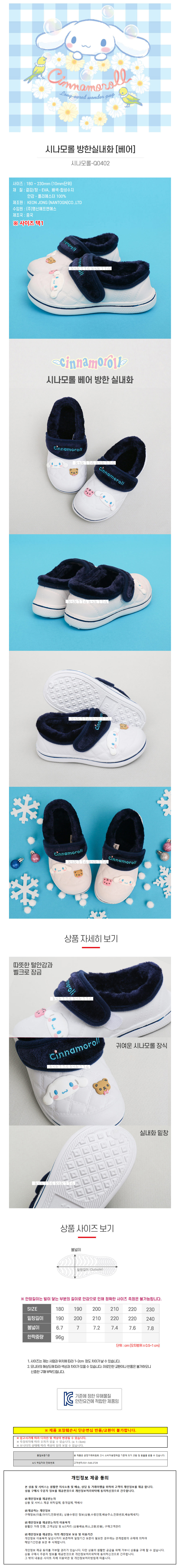 명신에프엔에스 시나모롤 베어 방한실내화 (택1)