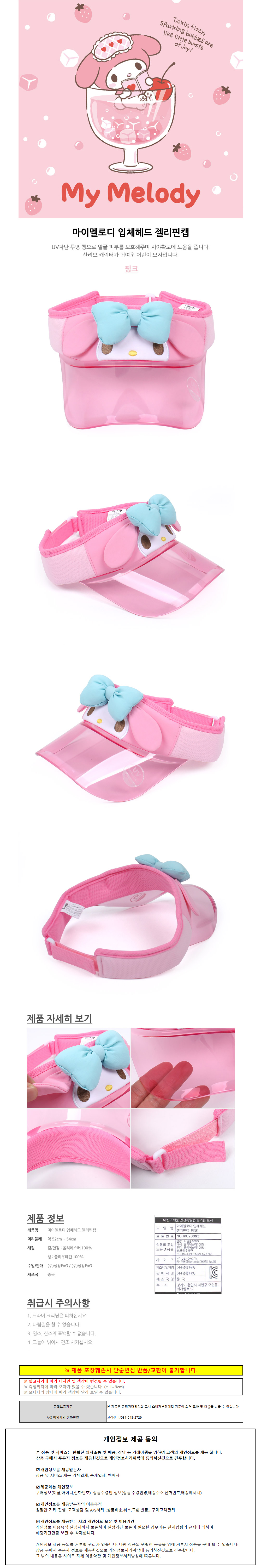 성창 썬캡 마이멜로디 입체 헤드 젤리 핀캡