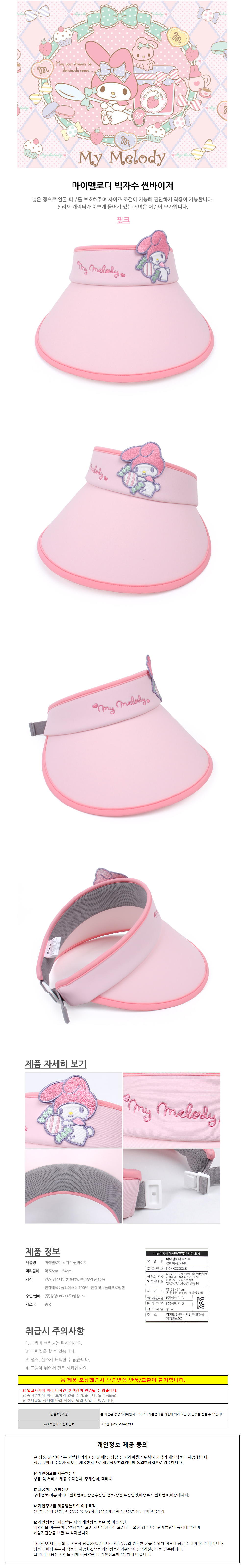 성창 썬캡 마이멜로디 빅자수 썬바이저