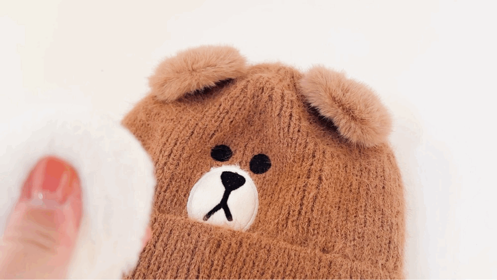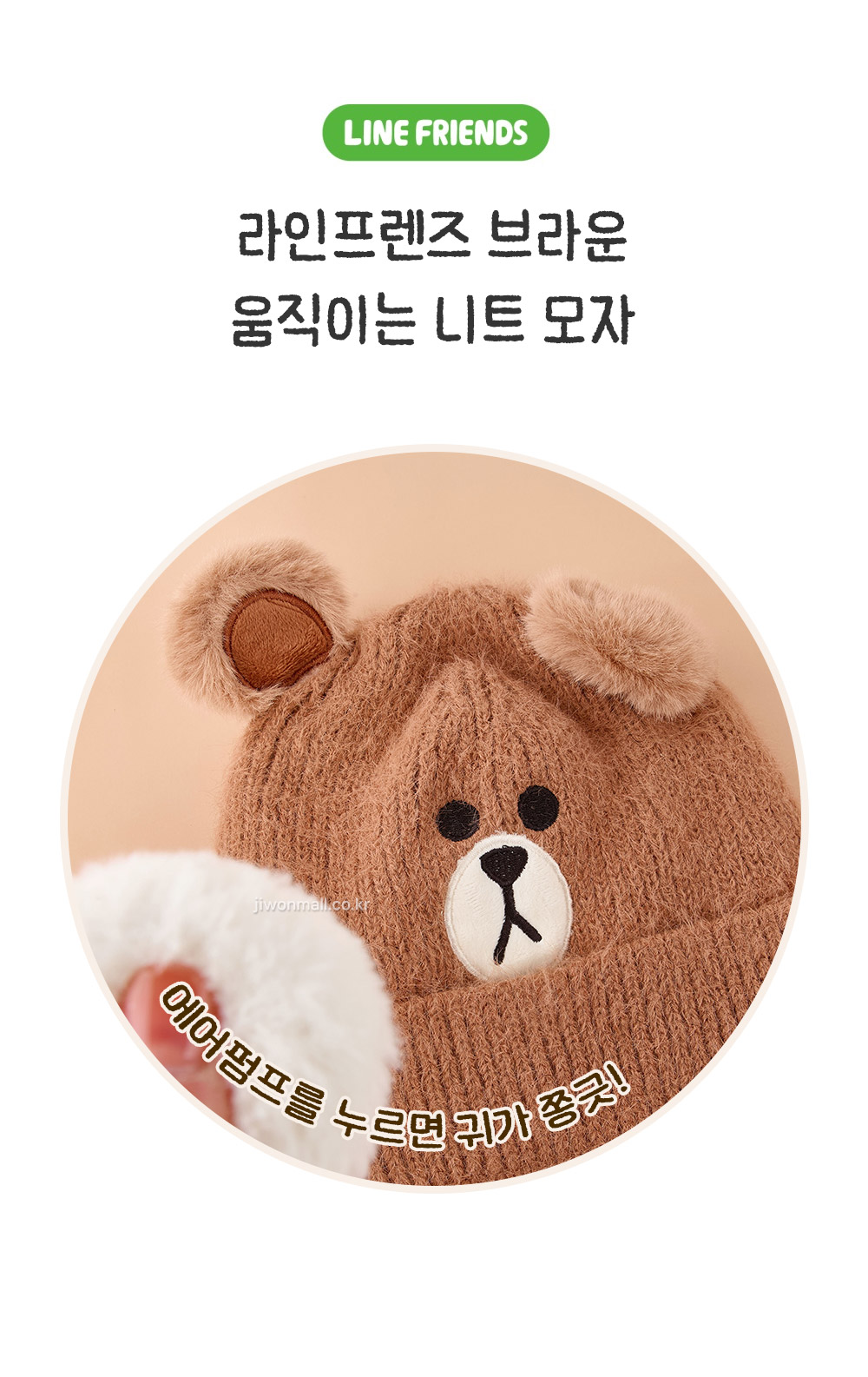 라인프렌즈 브라운 움직이는 니트 모자