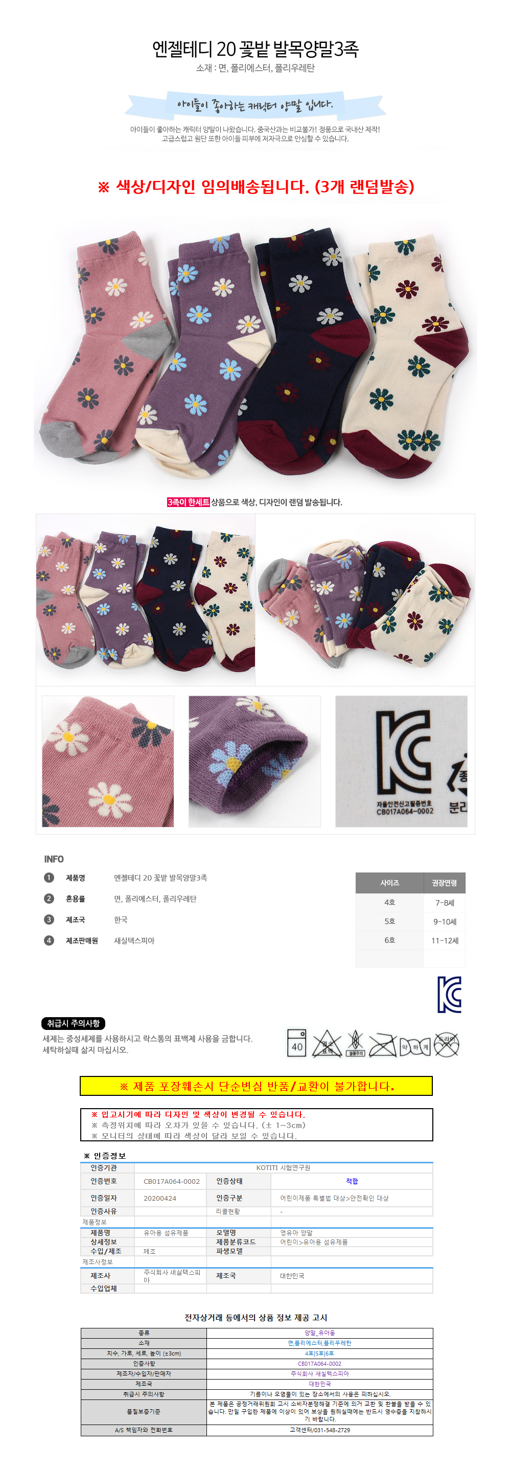 새실텍스피아 엔젤테디20 꽃밭 발목양말 3족 택1