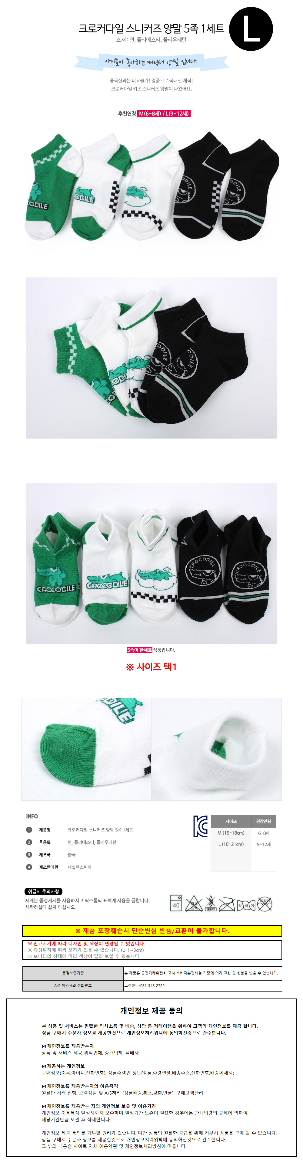 새실텍스피아 아동양말 크로커다일 키즈 스니커즈 양말 5족 1세트 (L)