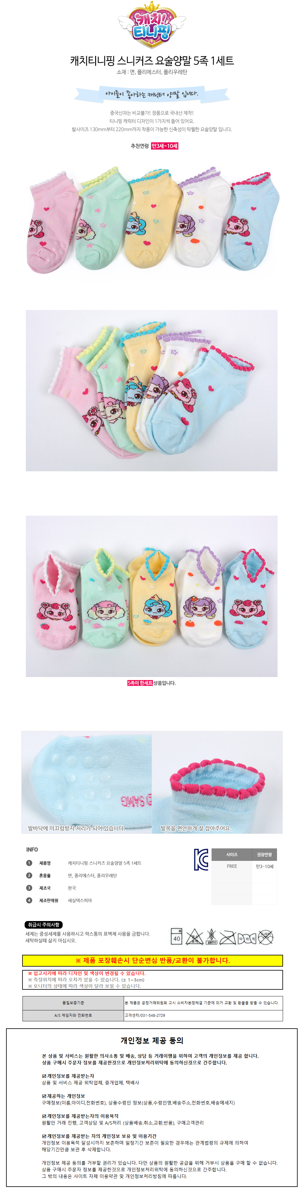새실텍스피아 아동양말 캐치티니핑 스니커즈 요술 양말 5족 1세트