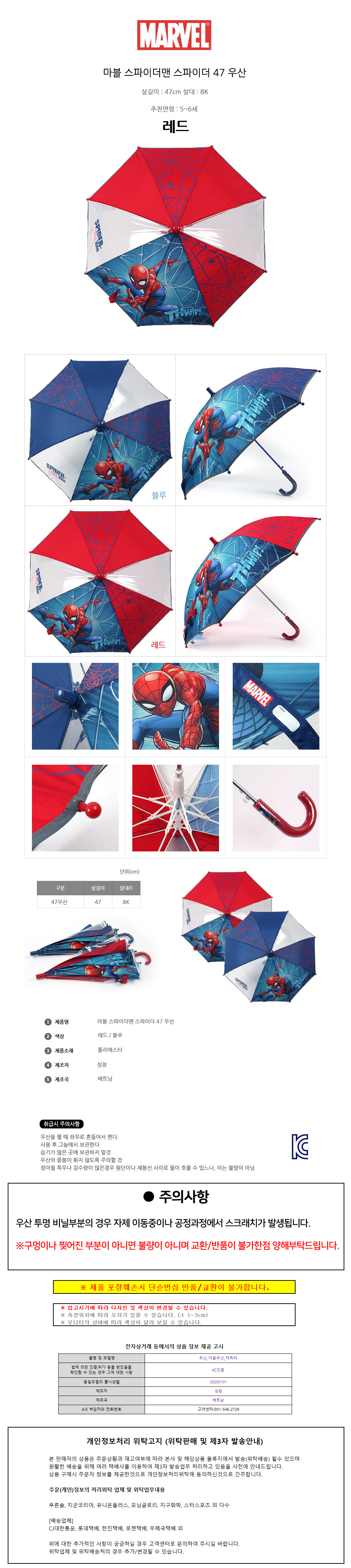 성창 마블 스파이더맨 스파이더 47 우산 레드