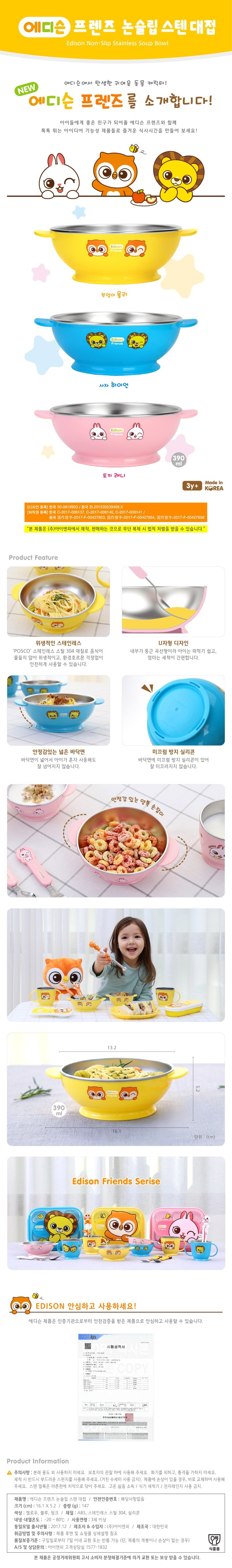 미끄럼방지 어린이식기 양손잡이 스텐레스 대접