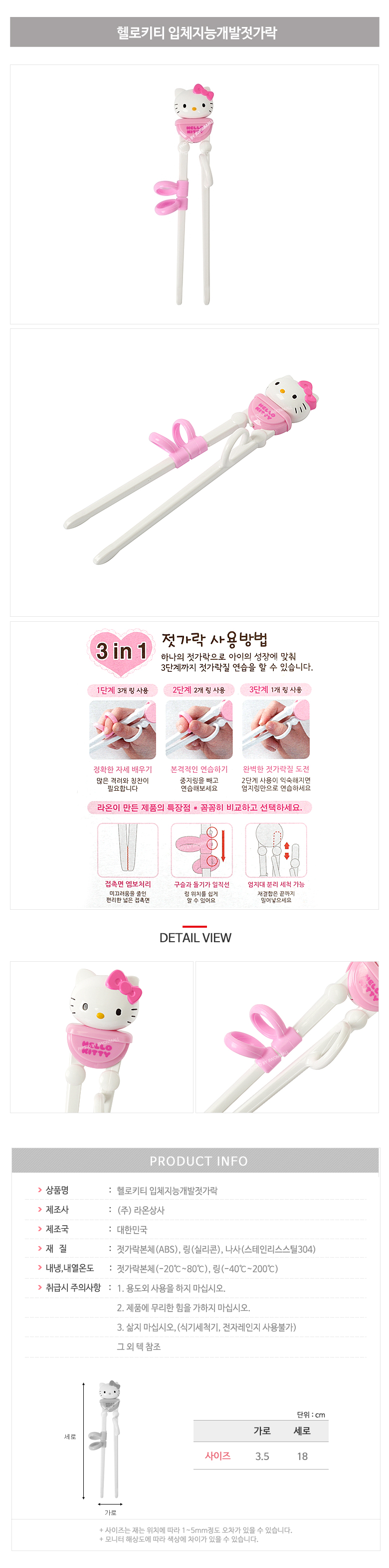 품명 및 모델명 헬로키티 입체지능개발젓가락