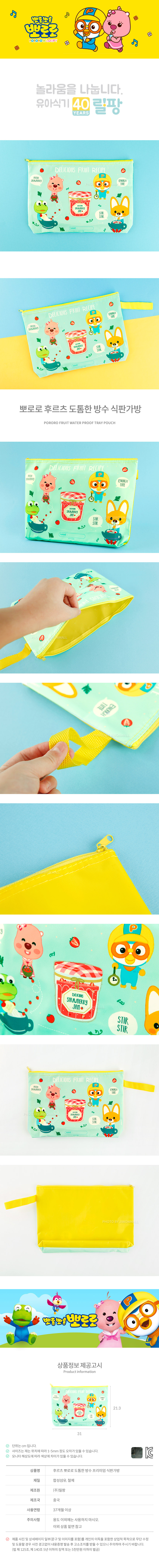 | 품명 및 모델명 | 후르츠 뽀로로 도톰한 방수 프리미엄 식판가방 |