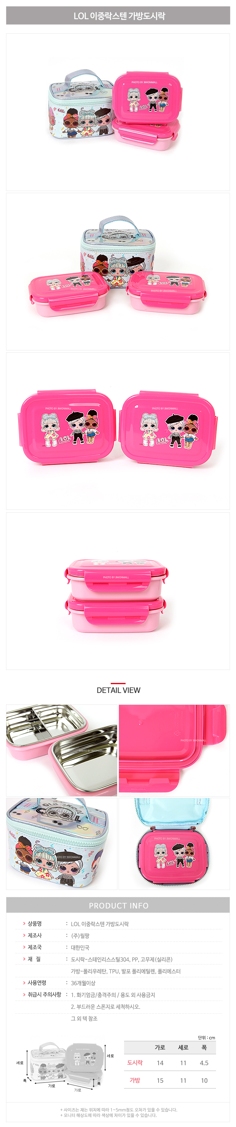 | 품명 및 모델명 | LOL 이중락스텐 가방도시락 |