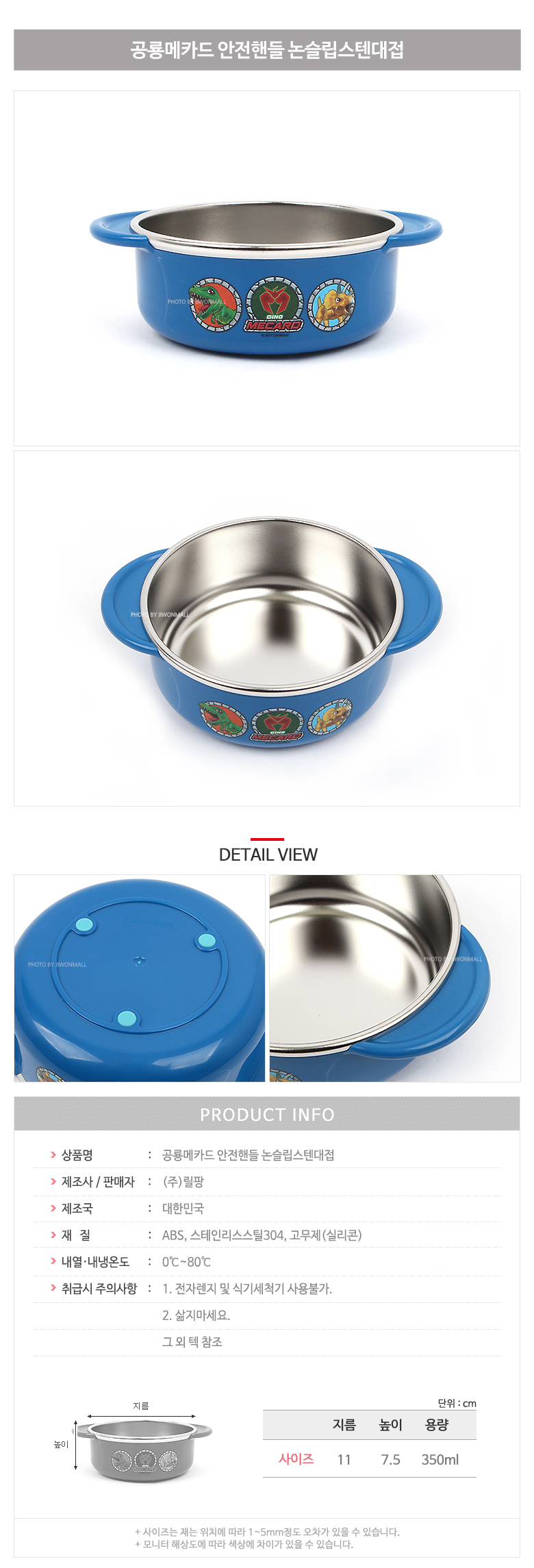 | 품명 및 모델명 | 공룡메카드 안전핸들 논슬립스텐대접 |