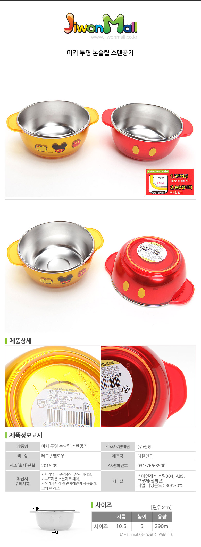 품명 및 모델명 미키 투명논슬립스텐공기(290ml)
