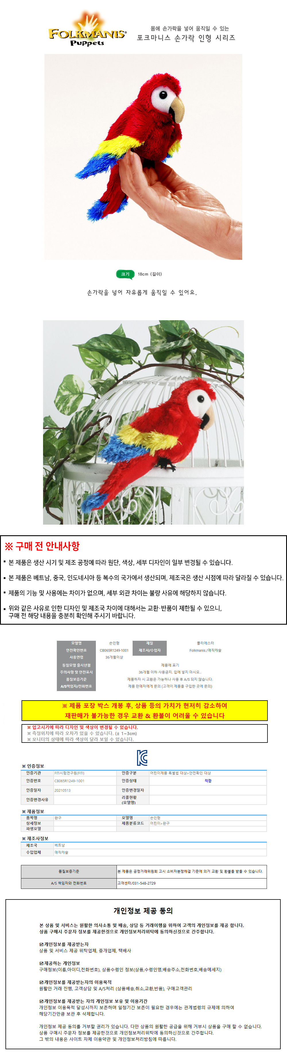폴크마니스 고급 손가락 앵무새 F2723