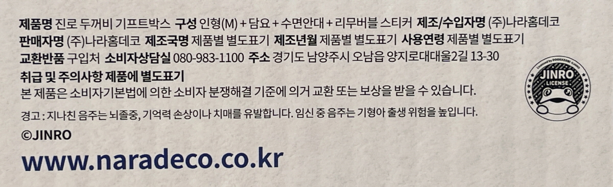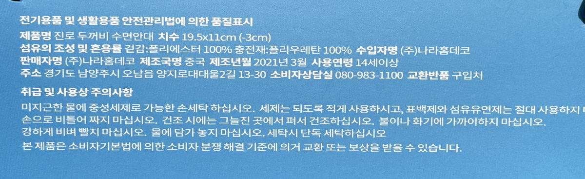| A/S 또는 소비자상담 전화번호 | 고객센터/080-983-1100 |