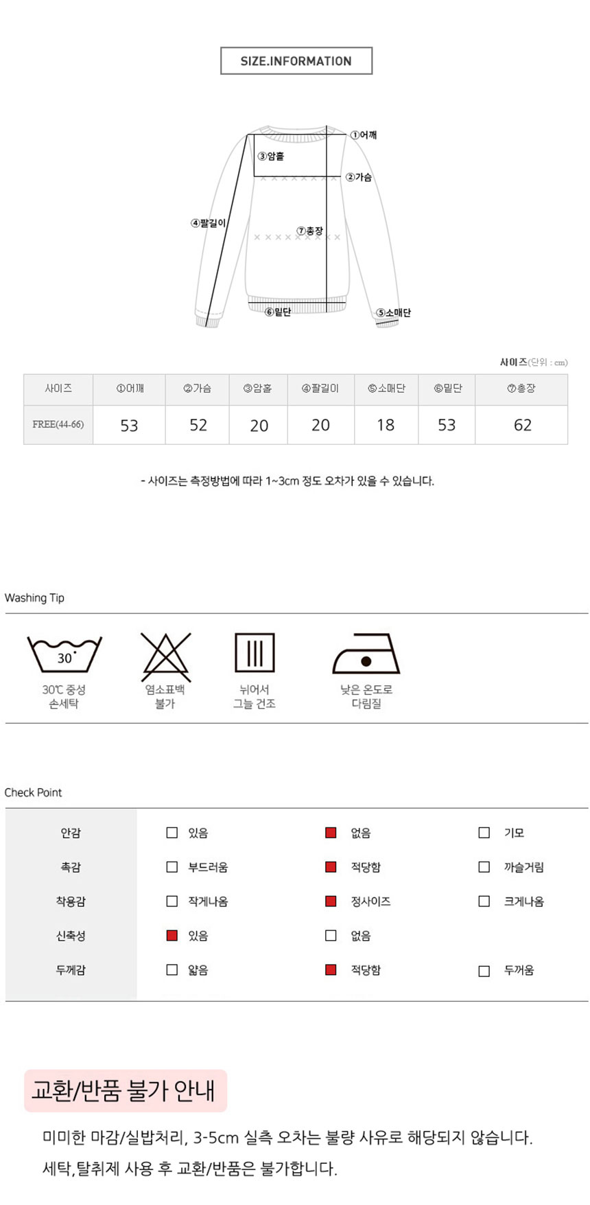 • 단순변심으로 인한 반품 시, 배송 완료 후 7일이 지나면 취소/반품 신청이 접수되지 않습니다.