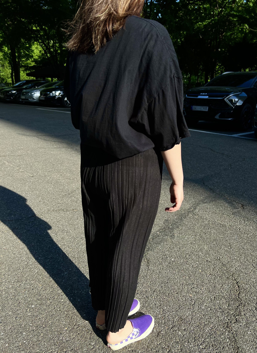 속비침이 없는 대신 플리츠팬츠의 본연의 맛이 모두 떨어졌습니다.