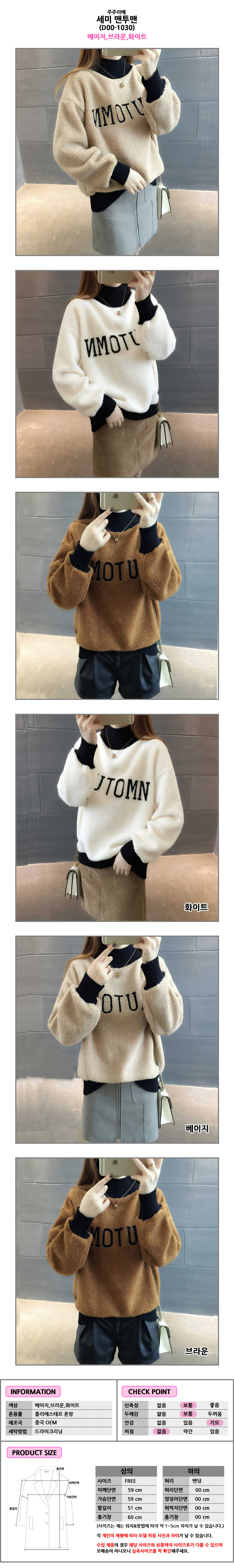 (D00-1030) 세미 맨투맨 오버핏 맨투맨 후드집업 라운드티 기모 뽀글이 목폴라