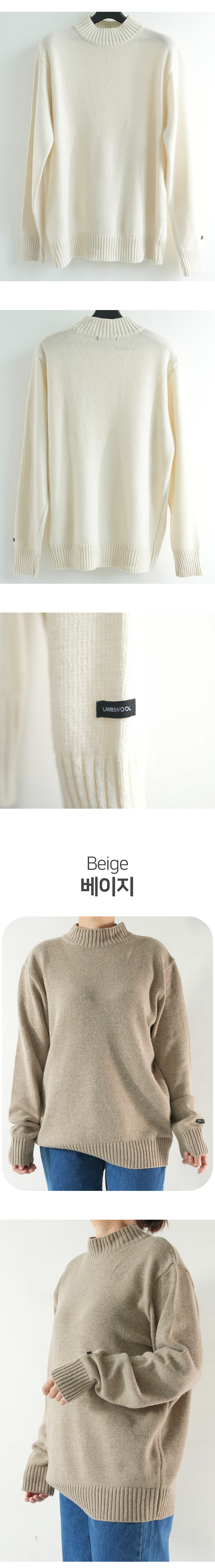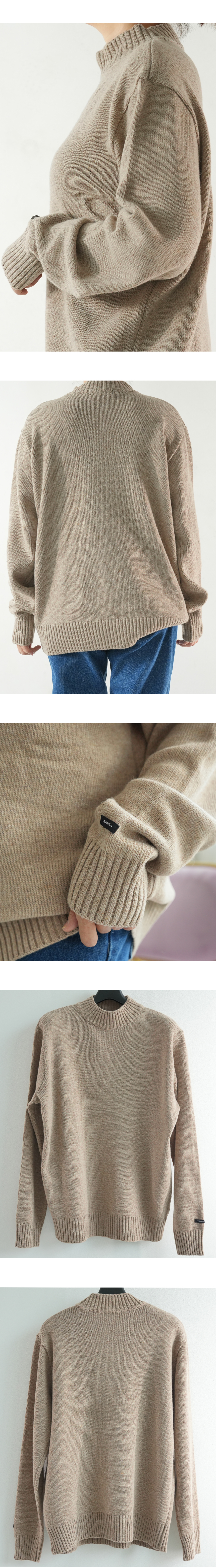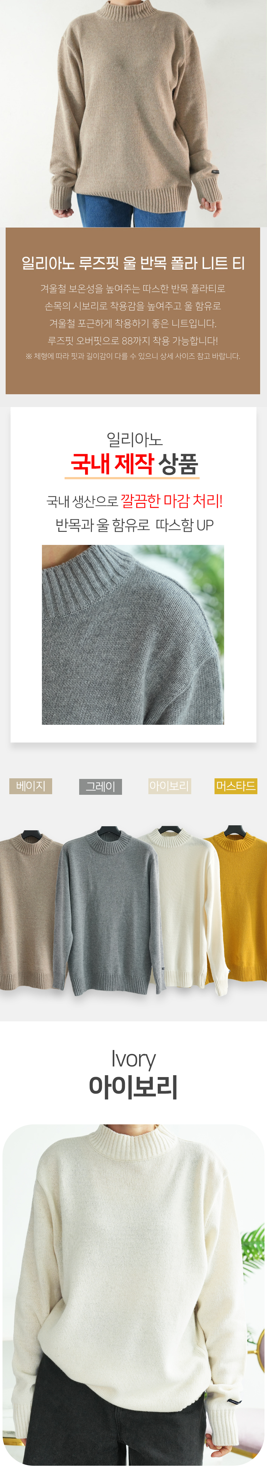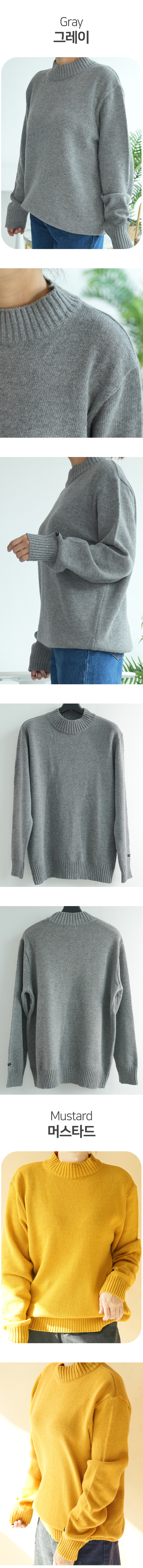 여성 반 목 폴라 루즈 핏 겨울 기본 니트 티 머스타드