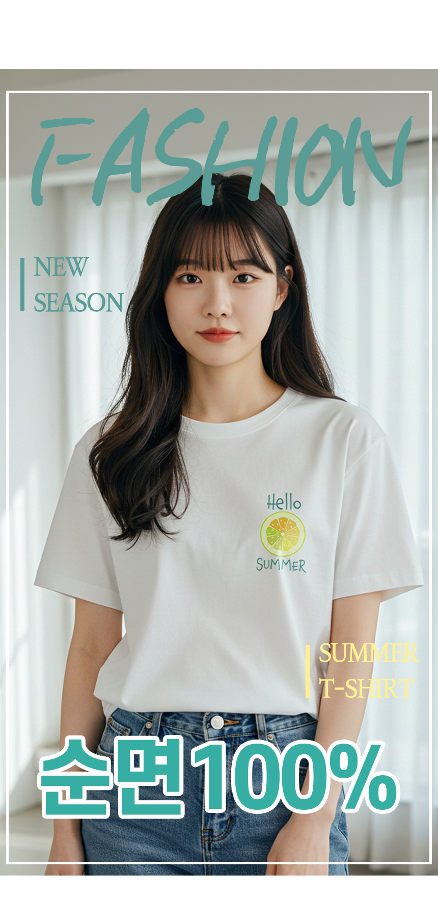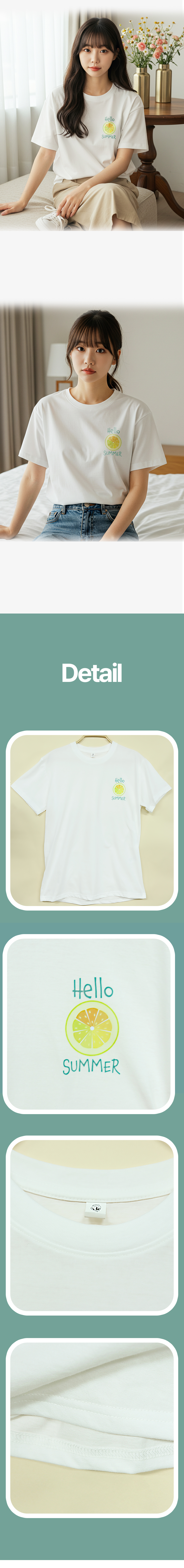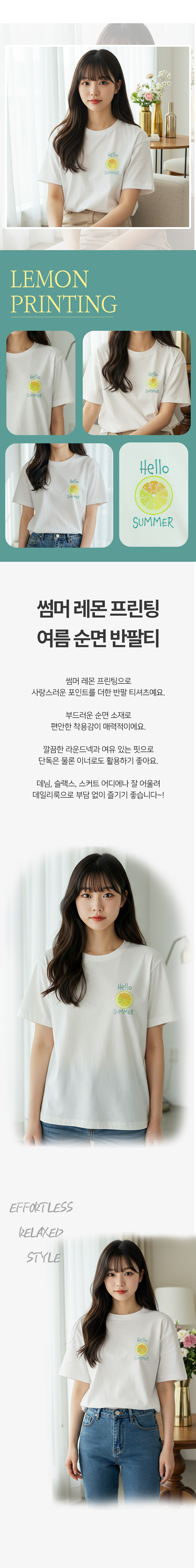 여자 레몬 프린팅 레터링 면 반팔 티셔츠 여름 흰 티